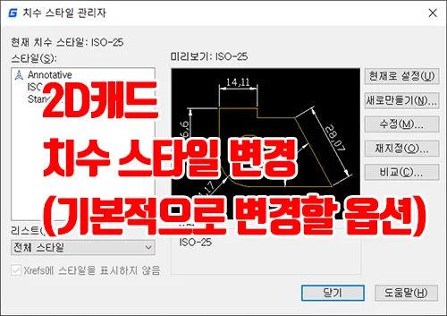 캐드에서 도면 치수기입에 따른, 치수 스타일 변경 방법으로, 기본적으로 익히고 있어야 하는 중요한 내용이다.지스타캐드, 오토캐드, ZW캐드, 캐디안 등 2차원 캐드 프로그램에서는 기본 공통적으로 사용되는 부분이기 때문에, 소프트웨어를 구분할 필요는 없다. 오토캐드. 즉, 2D 캐드에서 기능적인 부분에서 가장 많은 명령과 옵션이 존재하는 것이 바로 치수 관련 기능이 아닐까 싶다.이번에 참 오랜만에 강좌를 하고자 하는 내용은 단순히 치수 기입에 관련한 명령은 아니며, 명령어는 `dimstyle`인 치수 스타일 편집에 대해서 간단하게 알아보는 시간을 마련해 봤다.치수 스타일은 도면 작성에서 각종 치수의 모양과 크기를 변경하는 스타일 기능으로, 많은 사람들이 사용하고 있고, 개인들마다, 회사들마다, 직종들마다 ..