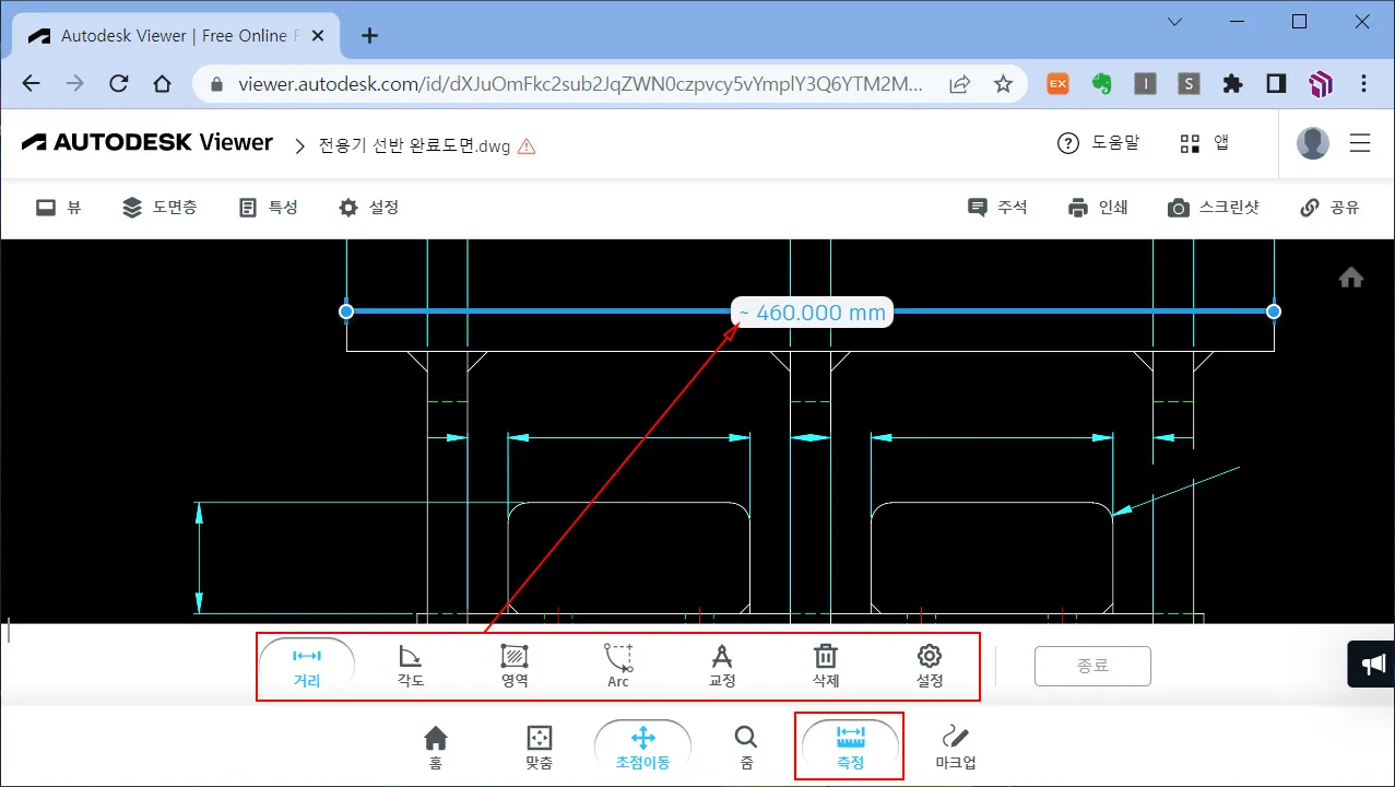 온라인 뷰어의 인터페이스는 정말 간결하다. 설치형 DWG 무료 뷰어에 비할 수 없을 정도이지만, 기본적인 기능은 제공하고 있다.