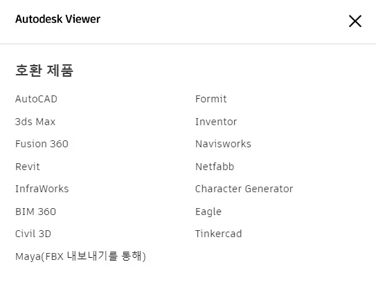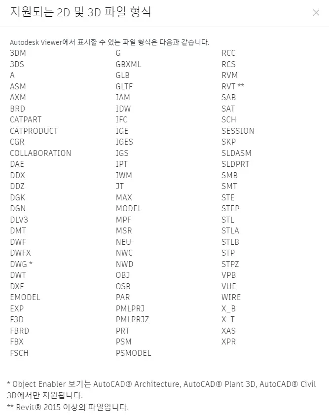 오토데스크 온라인 무료 뷰어에서 불러올 수 있는 파일 형식은 60여 종이 되는 것 같다.