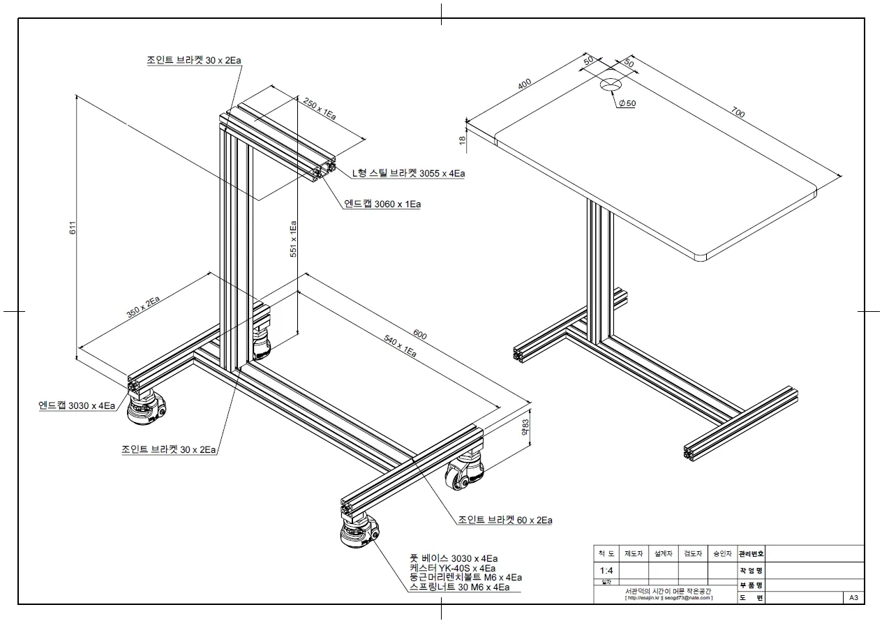 설계 및 제작에서 문제점은 본문 끝에 설명되어 있어, 이 글을 보고 책상 테이블을 생각하시는 분들은 꼭 참고하기 바란다.^^