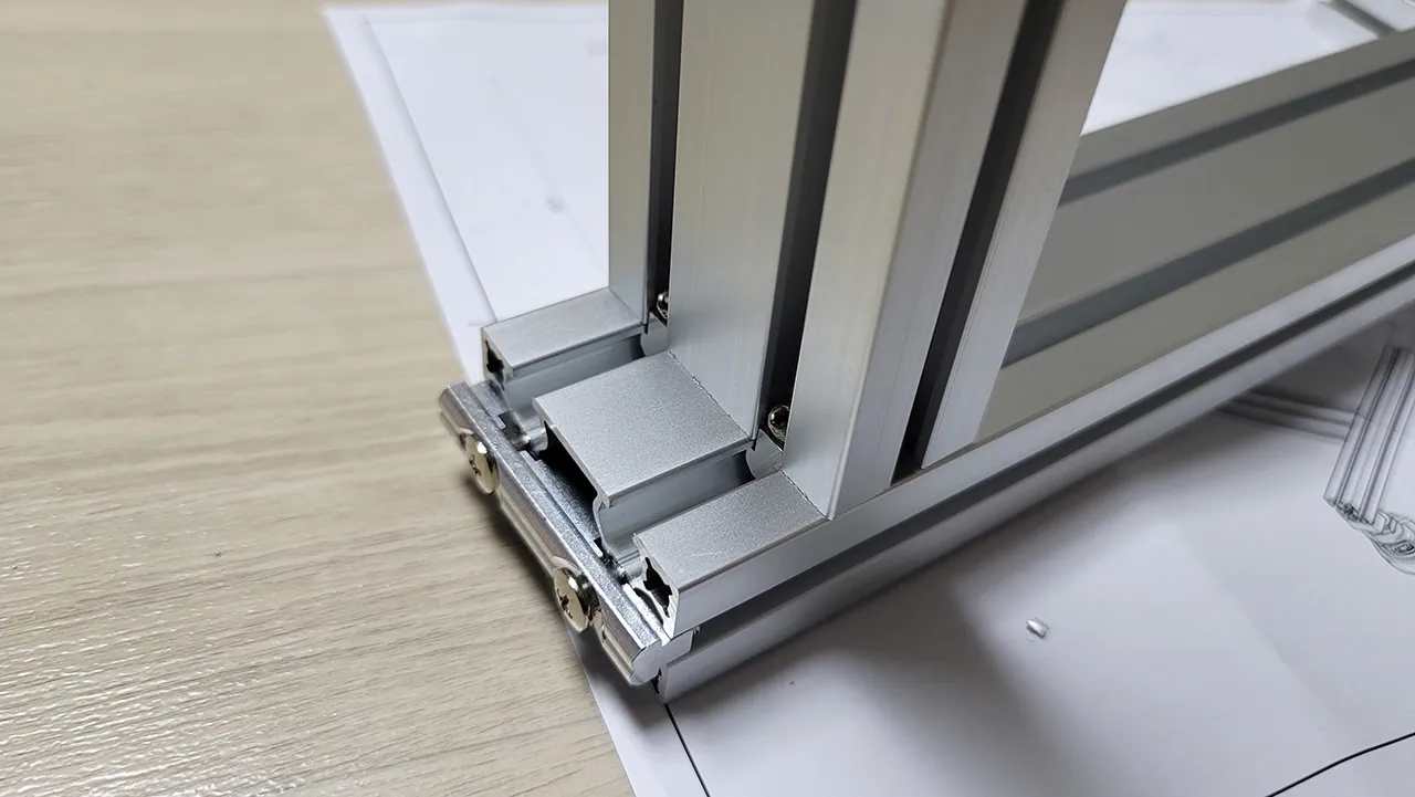 뼈대 구조만 있지만, 스마트 조립 부품의 진가가 발휘되는 것 같다. 프로파일 옆으로 덕지덕지 붙은 부품도 필요 없고, 또 프로파일 측면에 홀 가공해서 조립하지 않아도 된다.