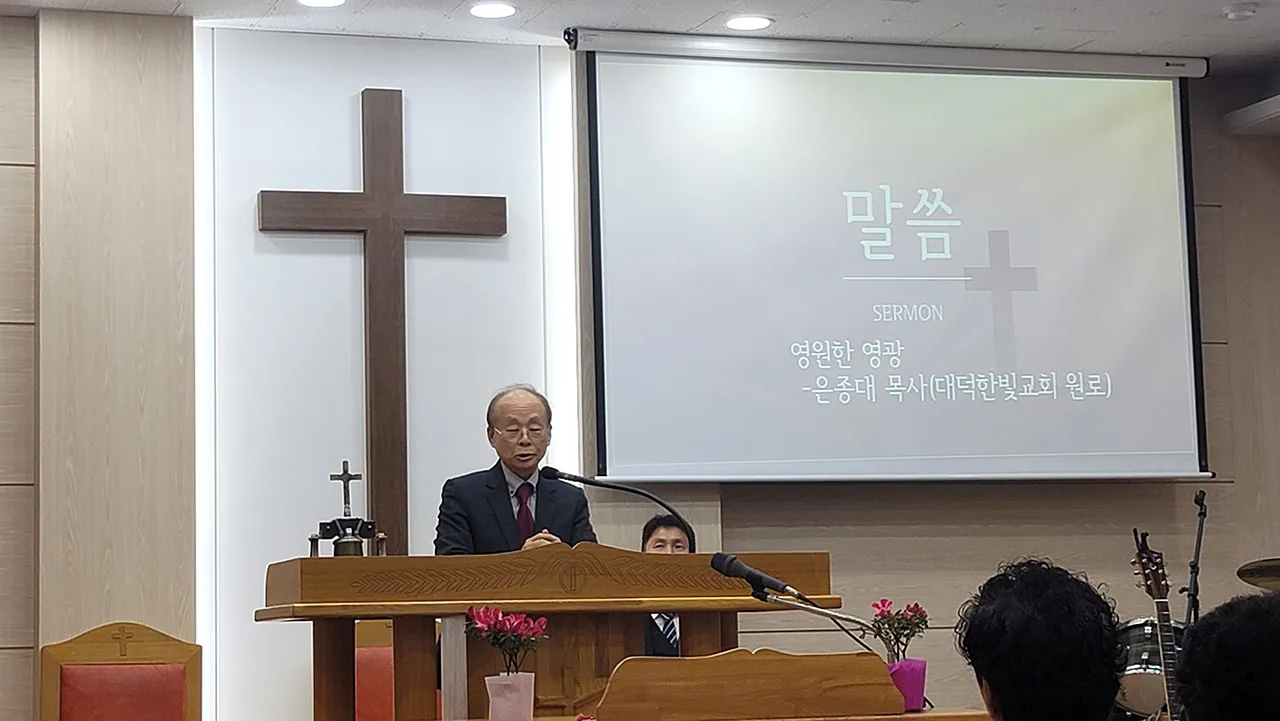 이번 주일 예배 설교 말씀은 멀리 대전 대덕한빛교회 원로 목사이신 은종대 목사님께서 "영원한 영광"이라는 말씀 주제로 전해 주셨다.