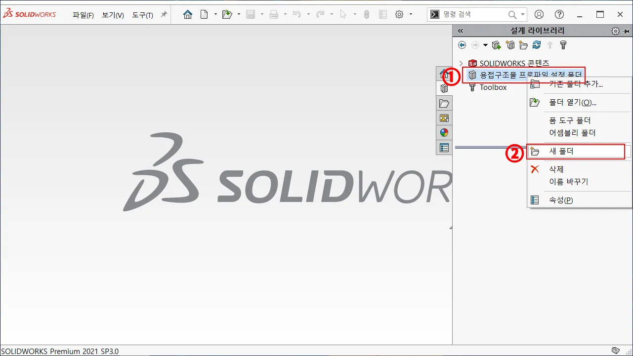 용접 구조물 프로파일 라이브러리 폴더 생성 및 옵션 설정