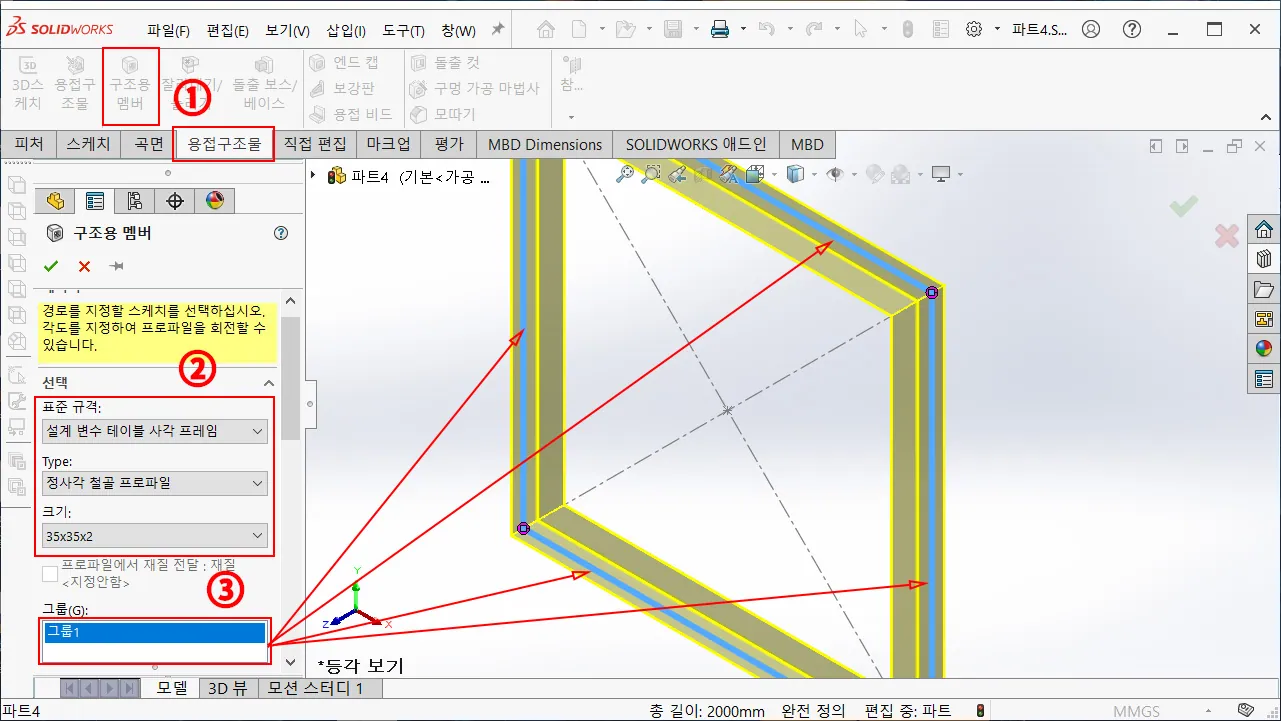 솔리드웍스 용접 구조물 프레임 프로파일 만들기 활용 강좌