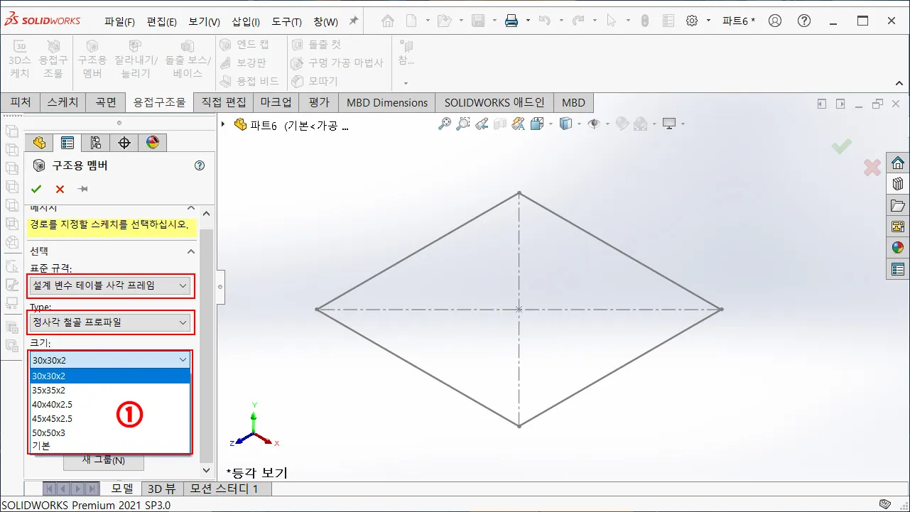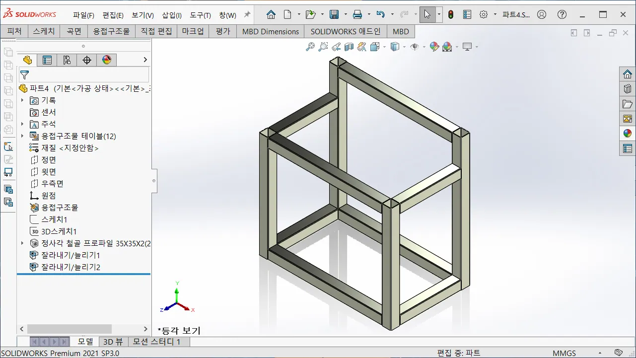 솔리드웍스 용접 구조물 프레임 프로파일 만들기 활용 강좌