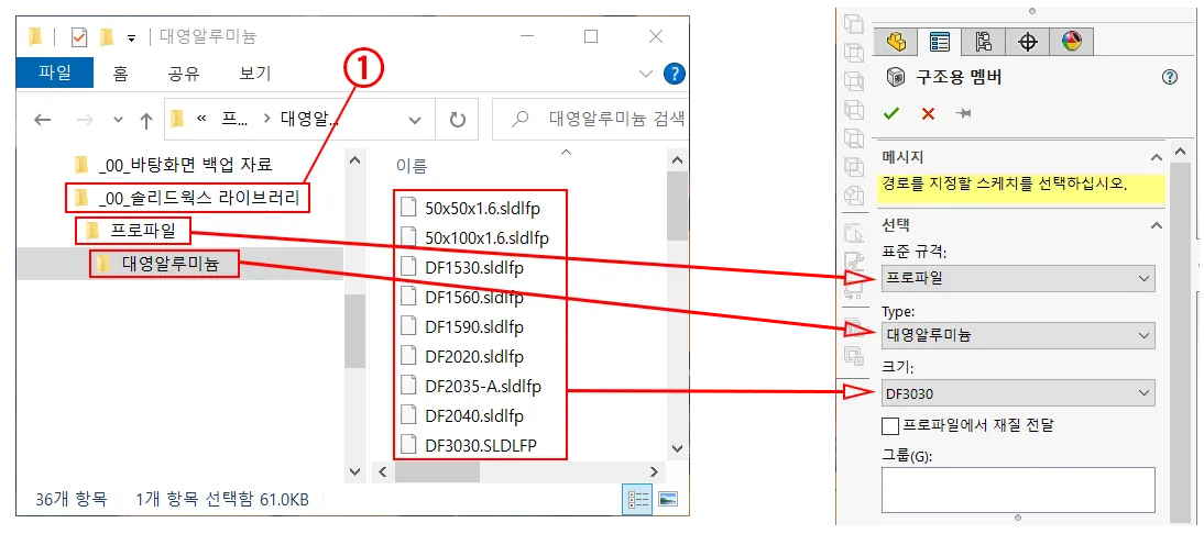 ※ Lib Feat Part (*.sldlfp)가 아니면, 용접 구조물 프로파일로 사용할 없다.