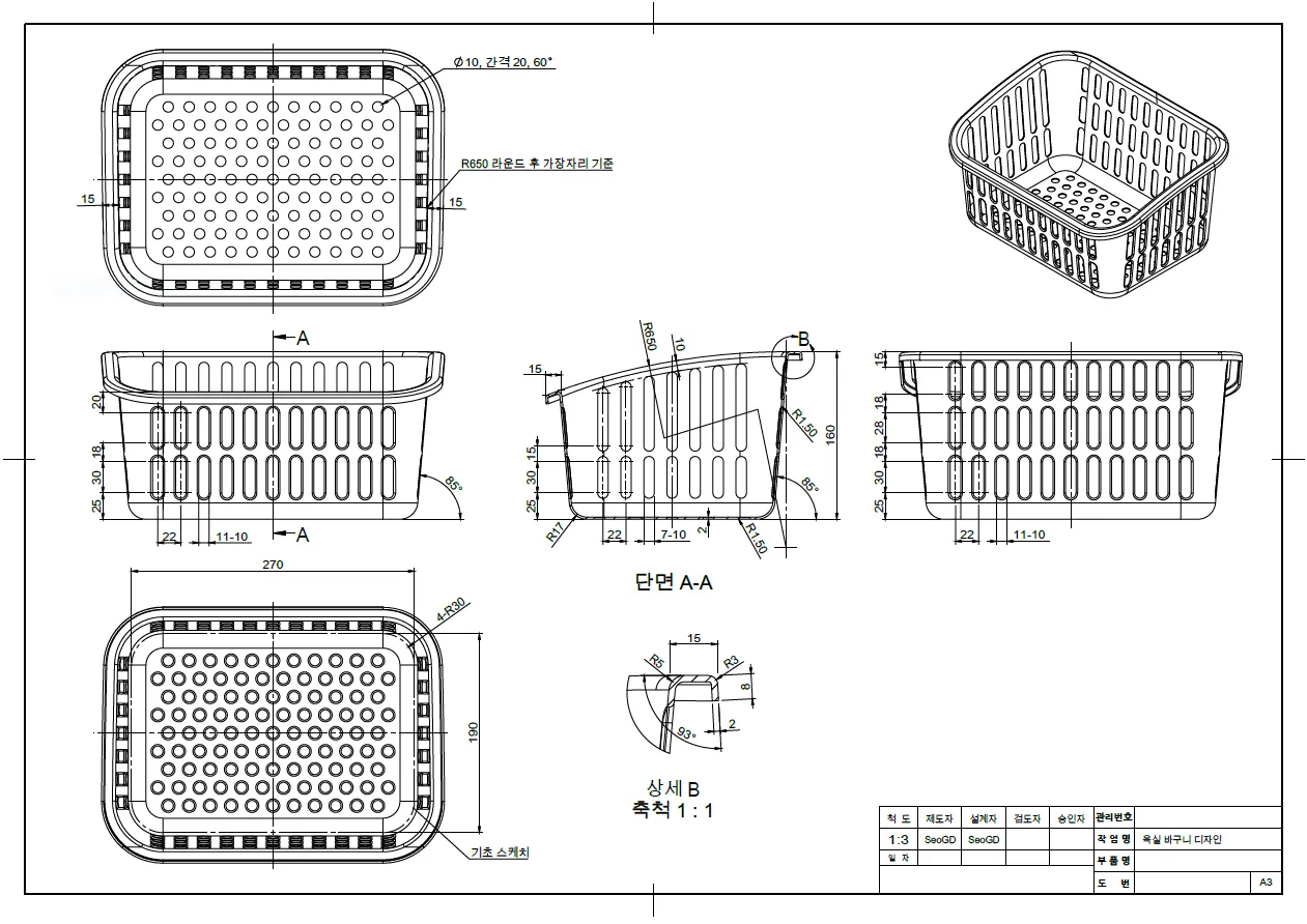 상기 바구니 도면은 직접 디자인하고, 생성한 도면으로, 치수가 누락되나 불합리한 부분이 있을 수 있으니, 문제가 있는 부분은 댓글로 알려주면 수정하겠습니다.