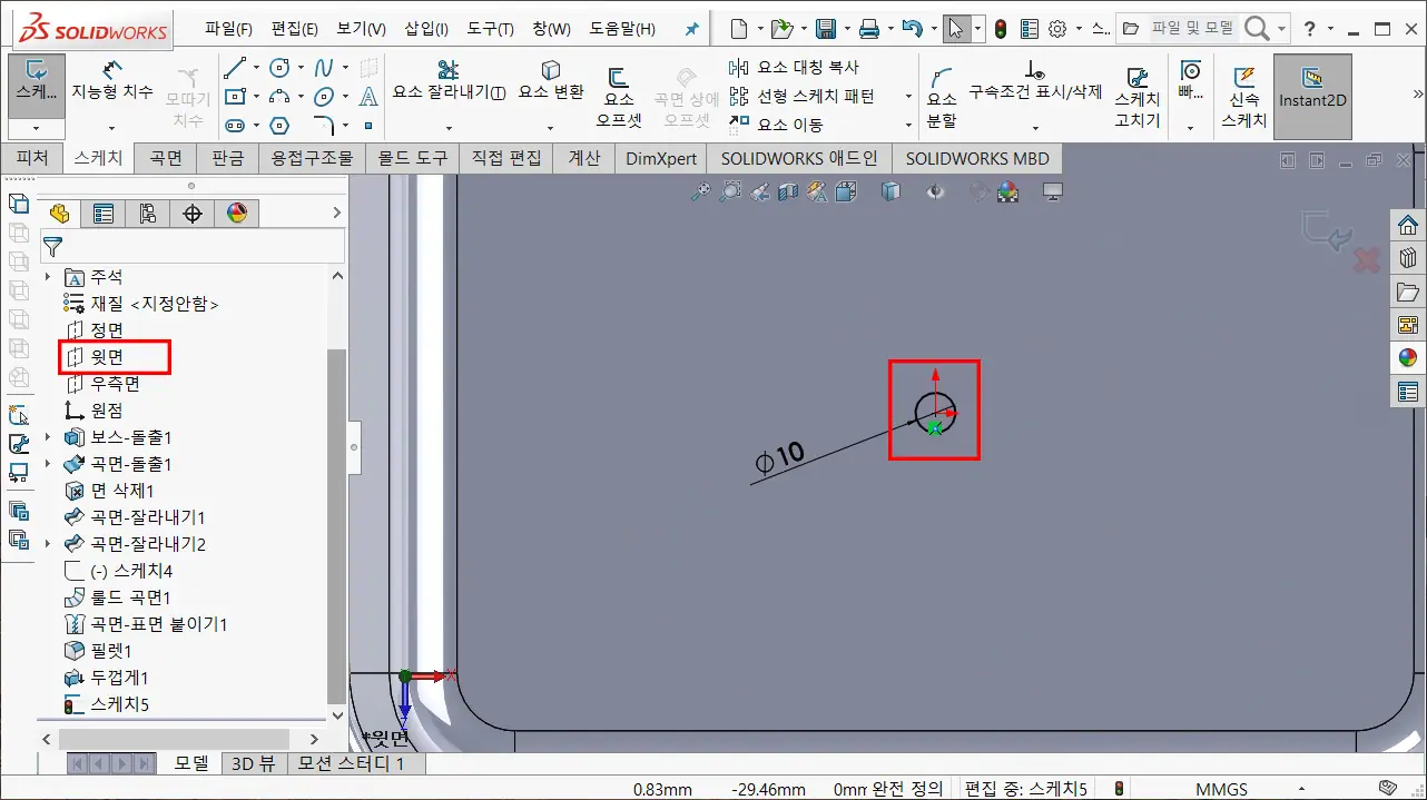 솔리드웍스 곡면 기능을 활용한 모델링 따라 하기