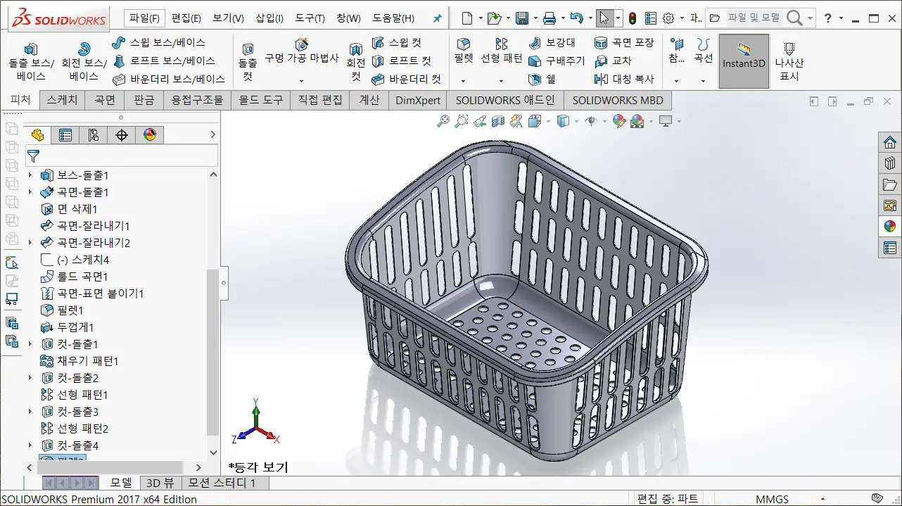 곡면을 이용한 플라스틱 바구니 모델링 따라 하기