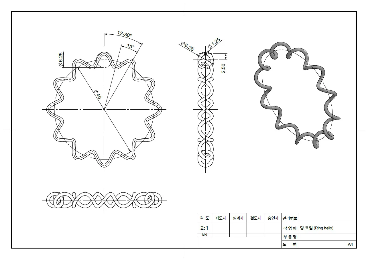 - 당신의 모델링 능력을 한 단계 높일 수 있는 무료 강좌, 솔리드웍스 모델링 따라 하기, 스윕을 이용항 링 코일 모델링 방법 소개 및 따라 하기