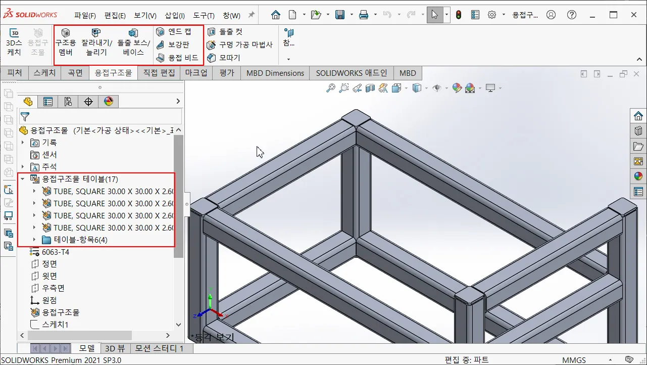 솔리드웍스 용접구조물은 각종 설비 구조물등을 굉장히 손쉽게 모델링할 수 있는 기능으로, 이 블로그에서도 두리뭉실하게 몇 번 강좌로 포스팅한 적이 있다.