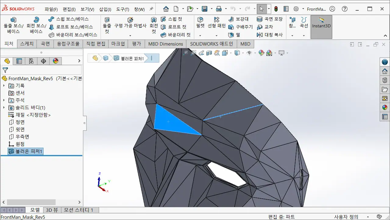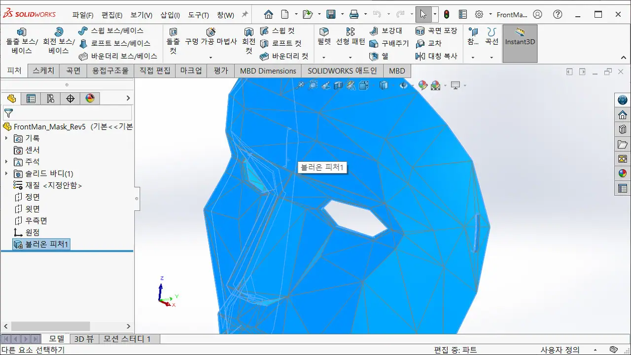 솔리드웍스 기능을 전부 활용하고, STL객체를 수정하기 위해서는 어쩔 수 없이 어느 정도의 불편함은 감수해야 하는 부분이다.
