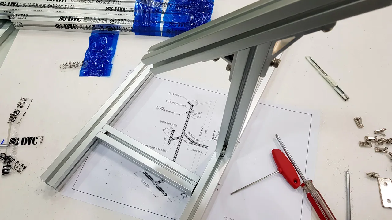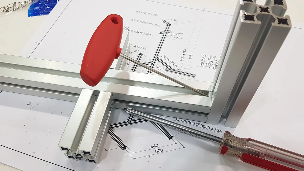 구조용 프로파일은 3030(가로 30mm, 세로 30mm) 크기로, 경량 제품을 주문했다.
