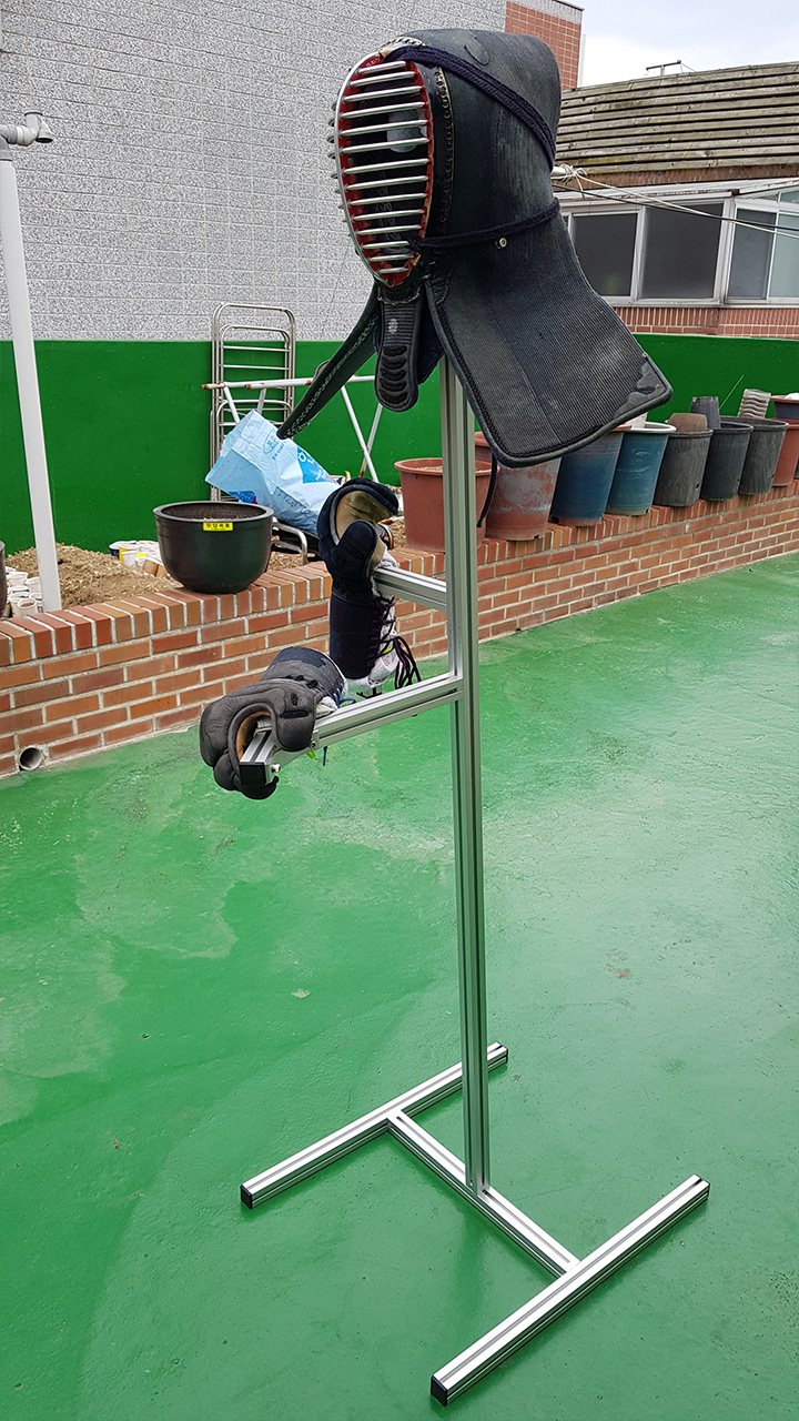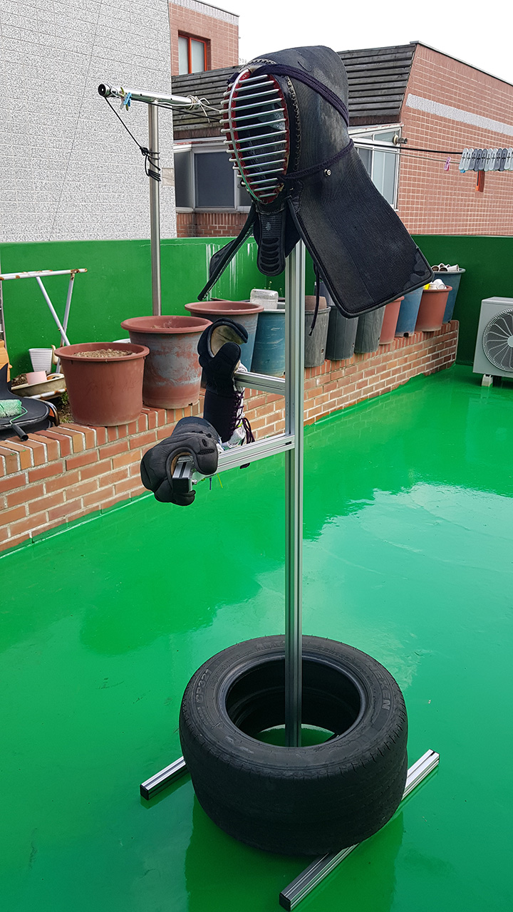 프로파일 구조에 머리, 허리, 손목 타격 부위는 전부 검도 보호장구를 이용해서 조립한다.