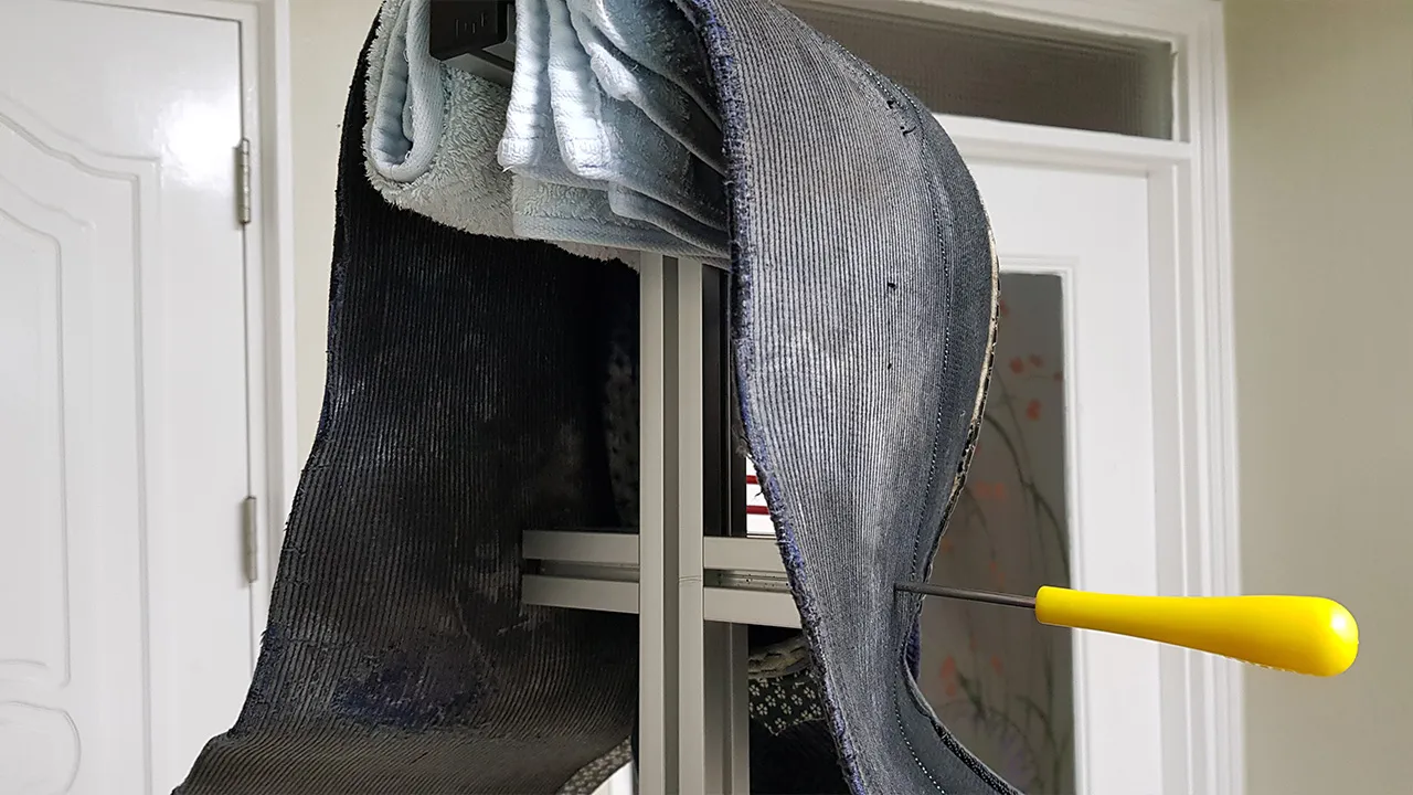 프로파일 구조에 단순히 꽂아 넣을 것이라면, 풀지 않아도 되겠지만, 타격 충격을 흡수시키기 위해서 안에 못쓰는 수건을 넣을 예정이기 때문에 풀어서 놓는 것이 나중에 장착할 때 편리하다.