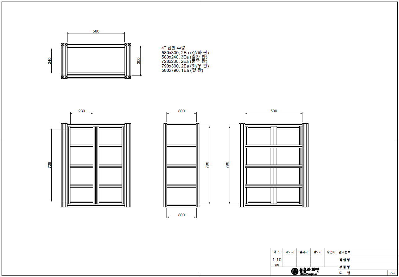 | 580mm x 240mm | 3 | 별도 가공 없음 | 내부 층간 판 | |