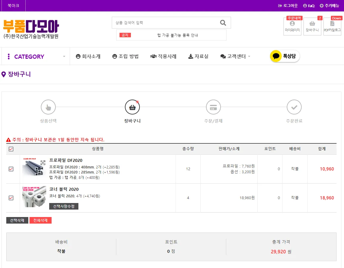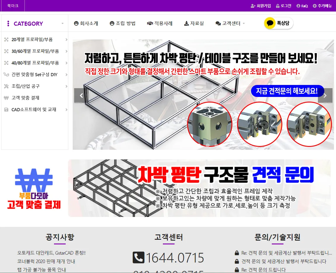 부품다모아는 알루미늄 프로파일 및 조립에 필요한 부품, 그리고 조립을 간편하게 해주는 스마트 조립 부품을 판매하는 전문 쇼핑몰이다.