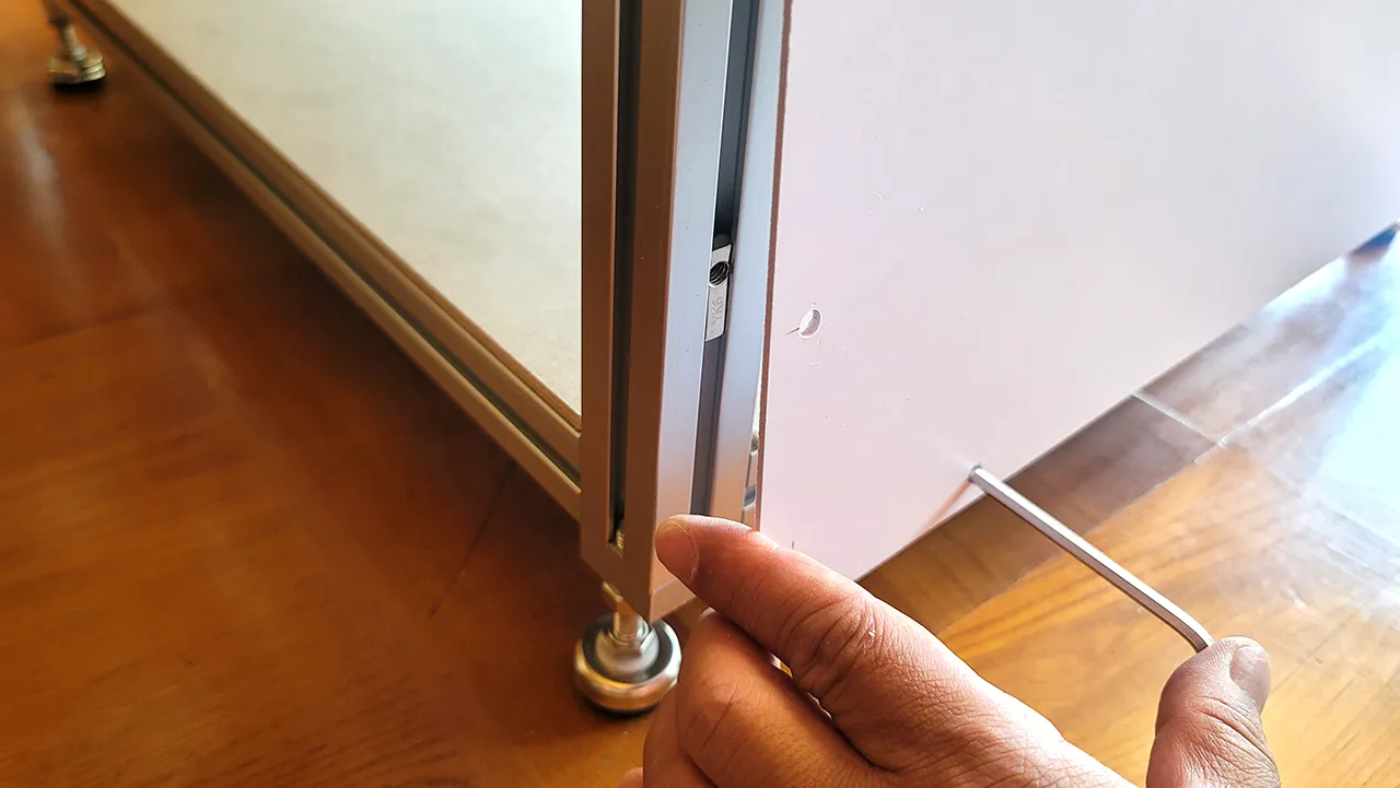 위 그림과 같이 프로파일 구조 바깥에 판재를 덧붙이는 방법도 있고, 프로파일 내부 터널에 넣어서 마감하는 방법도 있고, 멀티블록과 같은 판재 고정 부품을 이용해서 판재를 조립하는 방법 등 다양하게 있지만, 여기서는 간편하게 프로파일 바깥 터널에 판재를 덧붙이는 형태로 조립한다.