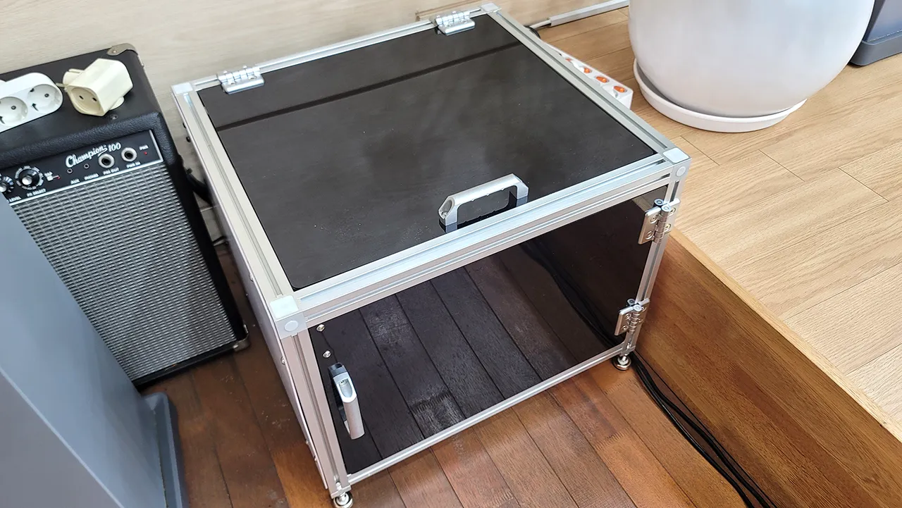 검은색 PC판에 은색의 손잡이와 경첩, 그리고 테두리도 은색으로 되어 있어서 상당히 깔끔한 느낌의 오디오 렉 케이스가 완성되었다.