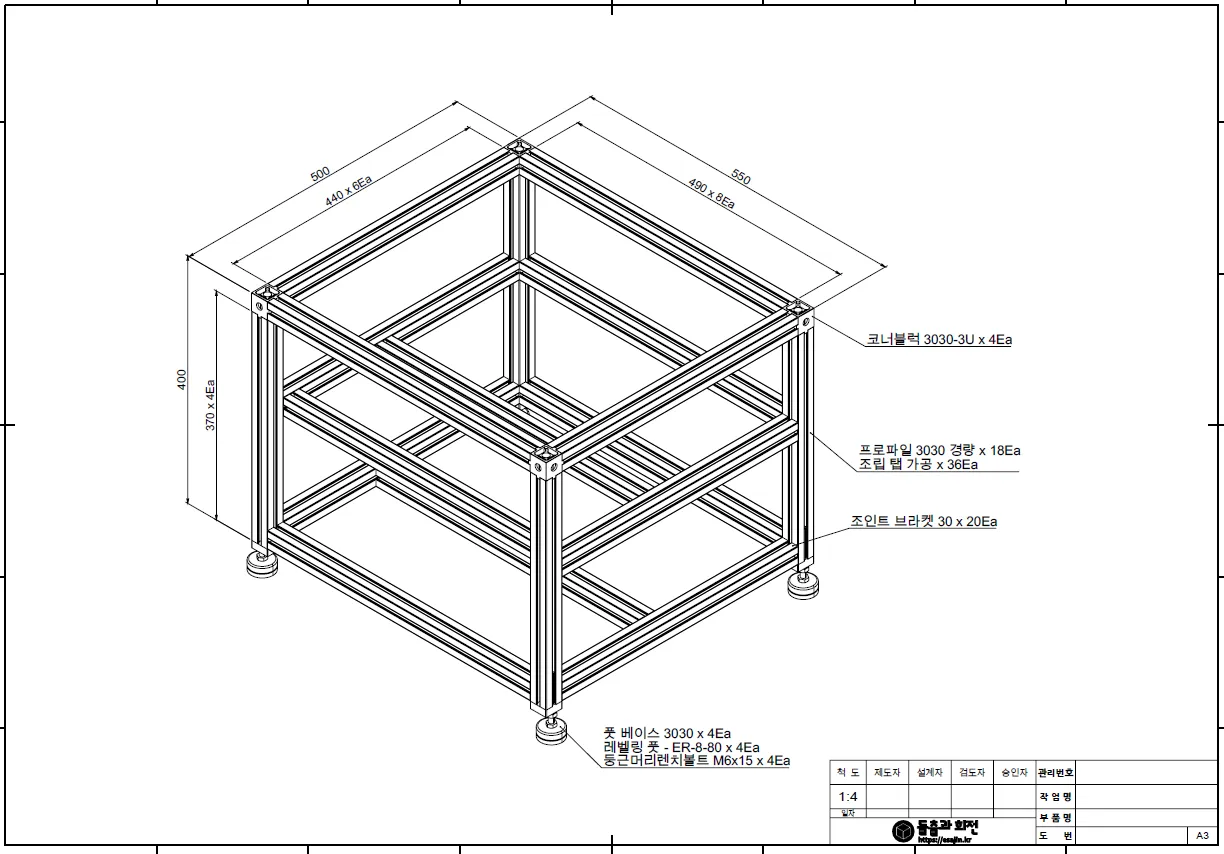 PDF도면을 다운로드하여, 프로파일 길이 선정, 부품 선정, 판재 크기 등 확인해서, 프로파일을 이용한 각종 DIY에 참고가 되었으면 좋겠다.