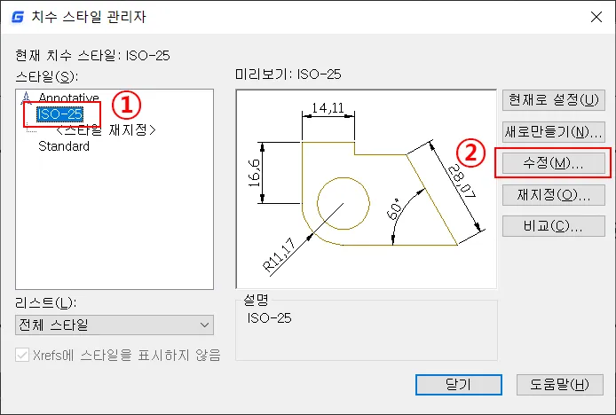 재지정으로 사용할 수 있는 치수 스타일 편집 강좌