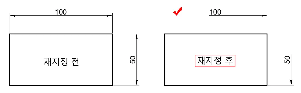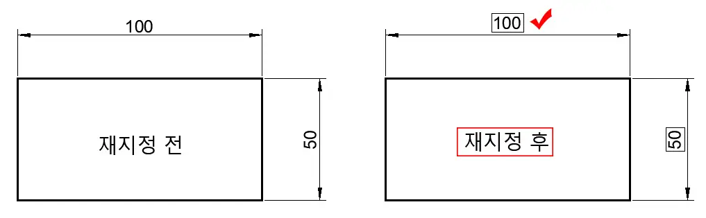 ※ 위 링크는 오토캐드 2016 버전 이상에서 제공되지 않는 `update`명령을 리습으로 만들어 사용하는 방법을 소개하고 있으니, 치수 재지정을 많이 하시는 분은 한번 참고해 보시기를 추천한다.