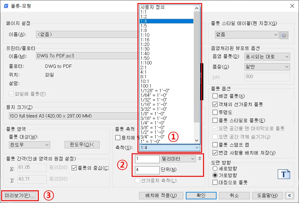 ⑥ 플롯 축척 (중요 필수 사항)
