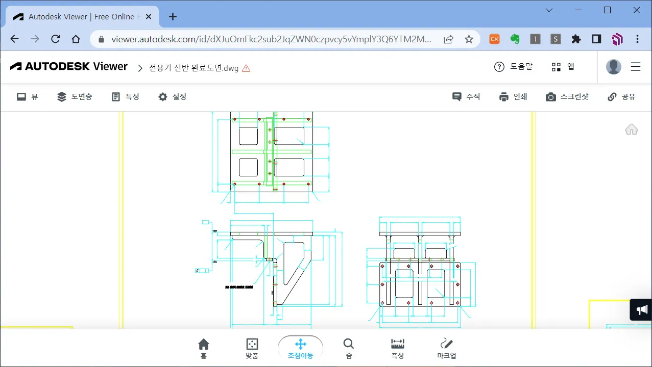 온라인 뷰어의 인터페이스는 정말 간결하다. 설치형 DWG 무료 뷰어에 비할 수 없을 정도이지만, 기본적인 기능은 제공하고 있다.