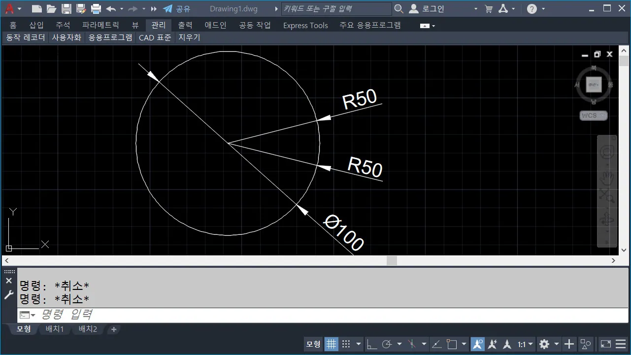 여담으로, 클래식 메뉴나, 리본 메뉴에서 원 그리기 옵션에 있는 접선, 접선, 접선 기능도 지금처럼 리습으로 명령과 옵션을 조합해서 만든 기능이라고 생각하면 된다.