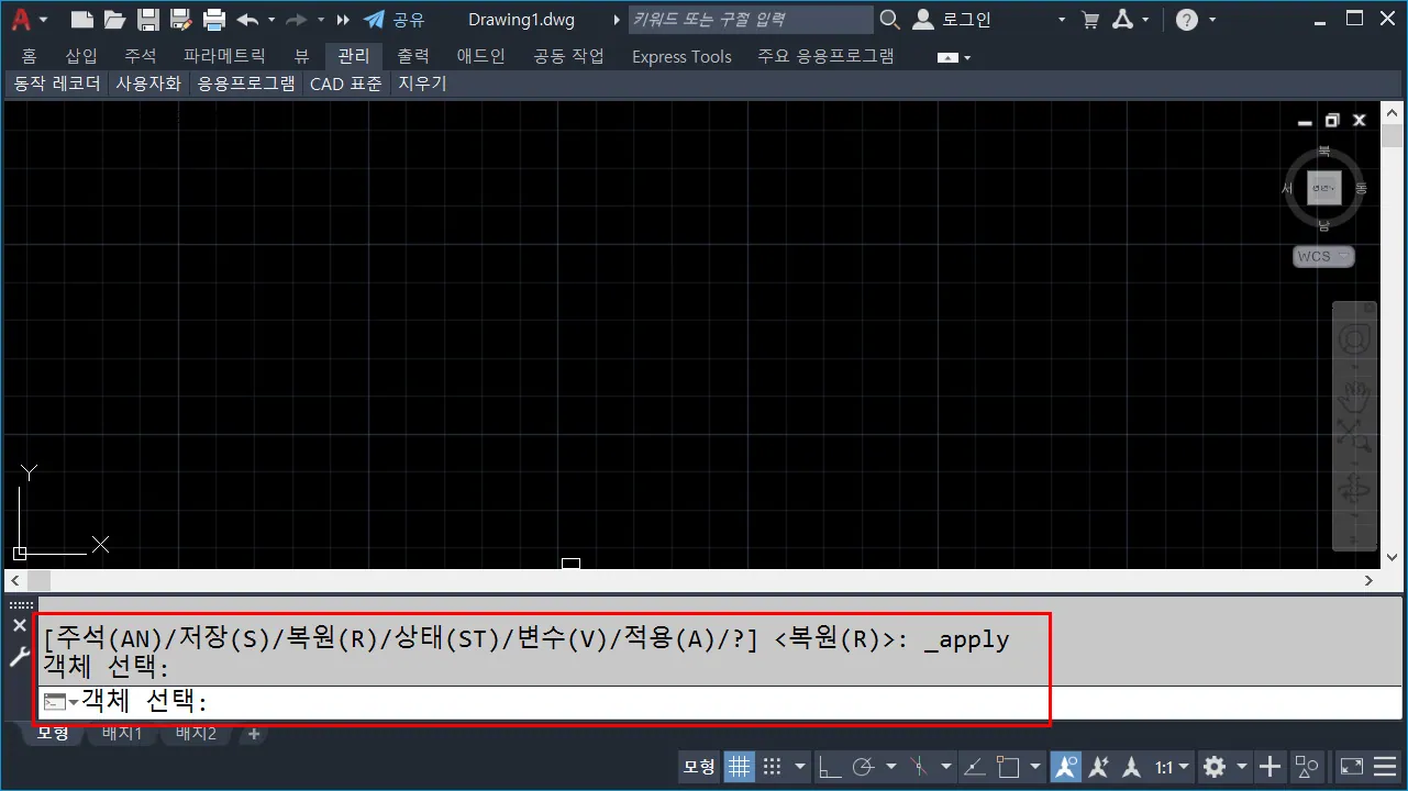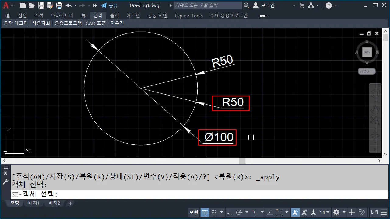 그리고, 엔터나 스페이스 바를 누르면, 동일하게 dimstyle, apply가 동작하는 것도 확인할 수 있을 것이다.
