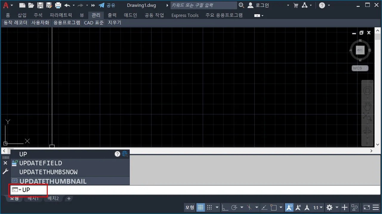 오토캐드 명령창에 입력하는 명령어는 up이다.