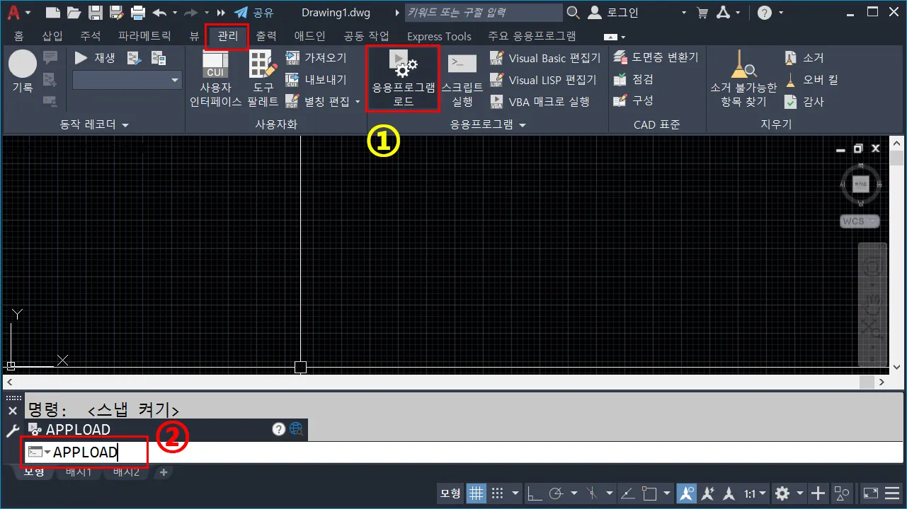 원하는 방법으로 오토캐드 응용프로그램 로드/언로드를 실행한다.
