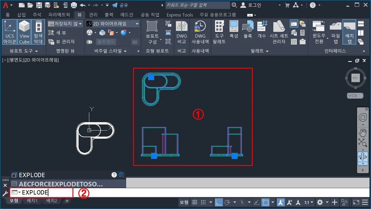 도면 배치가 끝났다면, 그룹으로 이루어진 도면을 분해한다.
