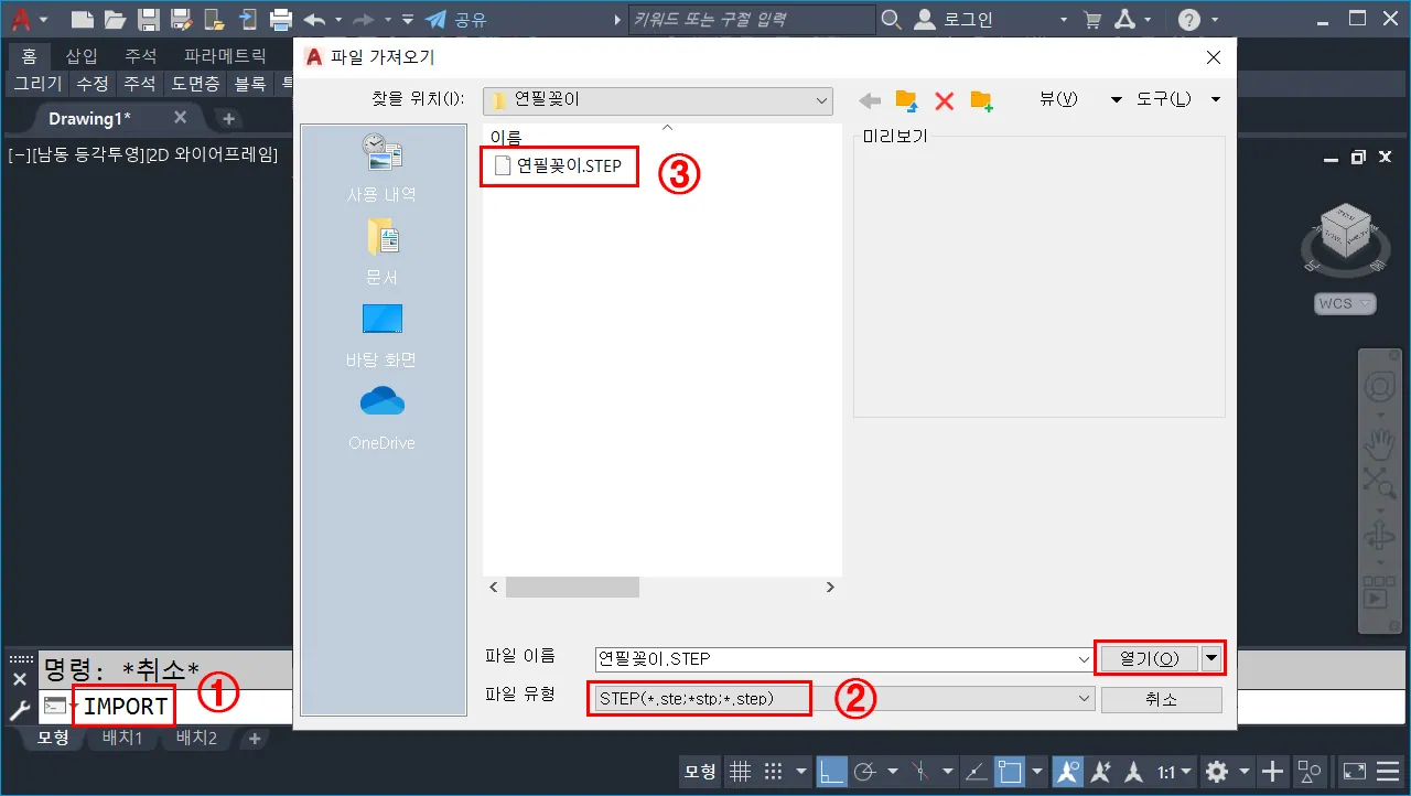 오토캐드에서 Step(Stp) 파일 가져오기