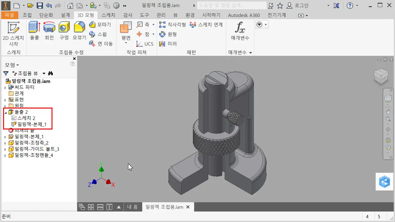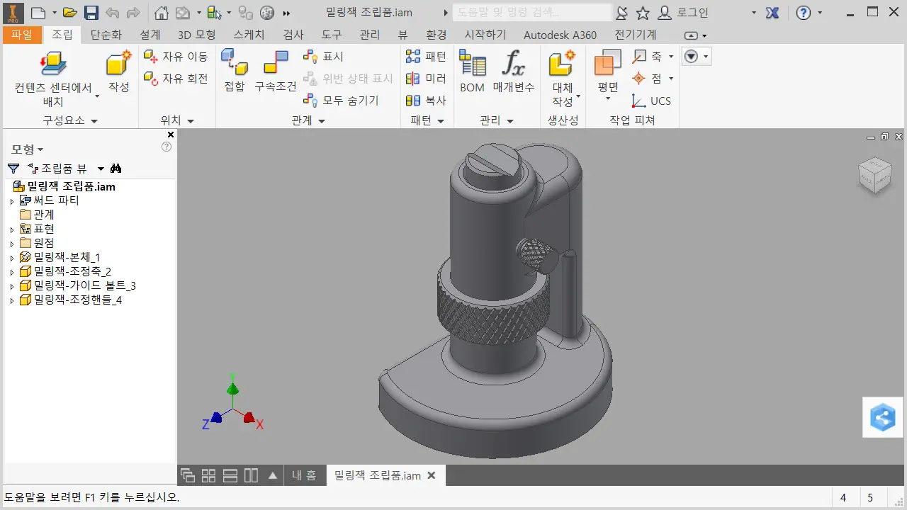 조립품 단면 연습용 밀링잭 조립품.STEP