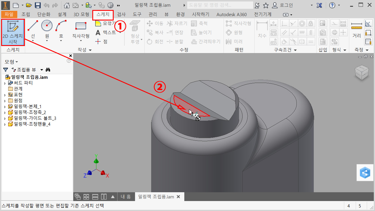 ① 조립품 상단에서 스케치 탭을 클릭한다.