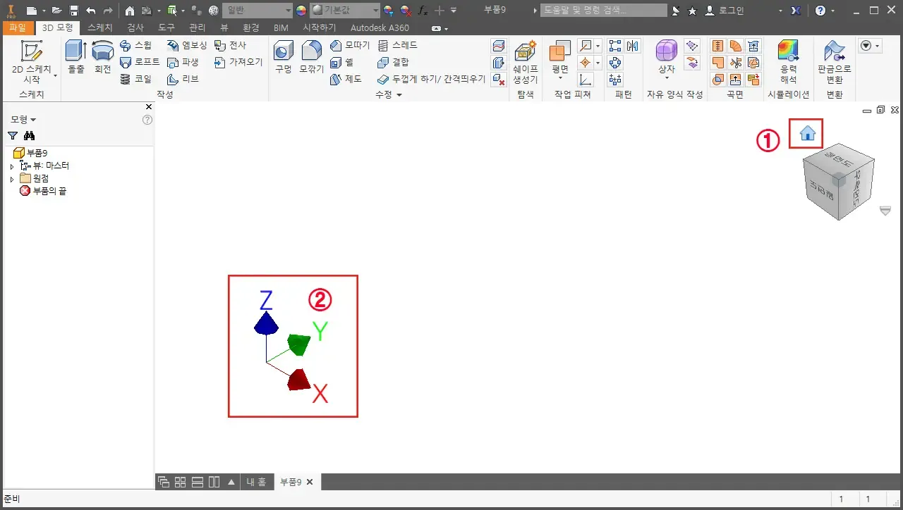 - 인벤터 홈 뷰(Home View) 방향(F6)을 원하는 좌표계로 설정하는 방법