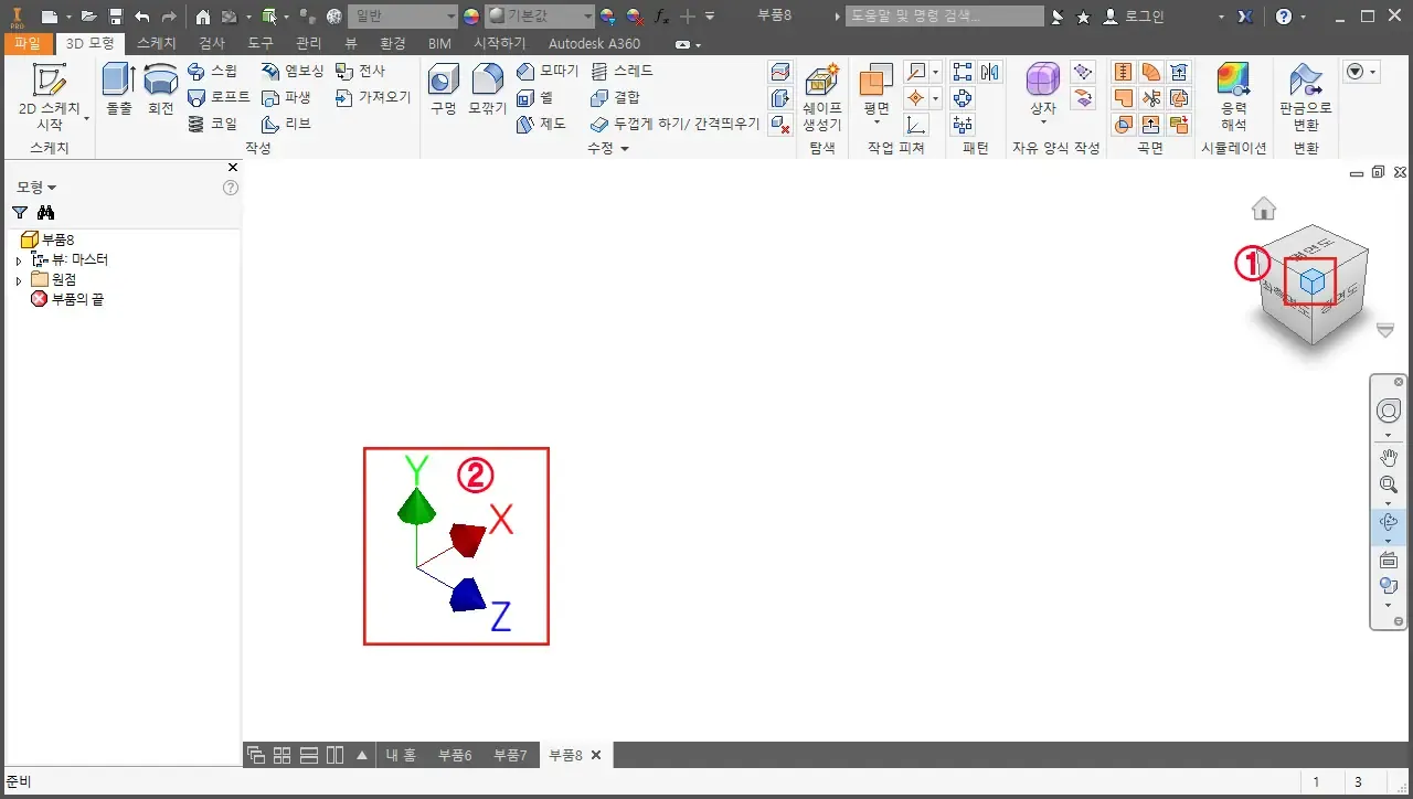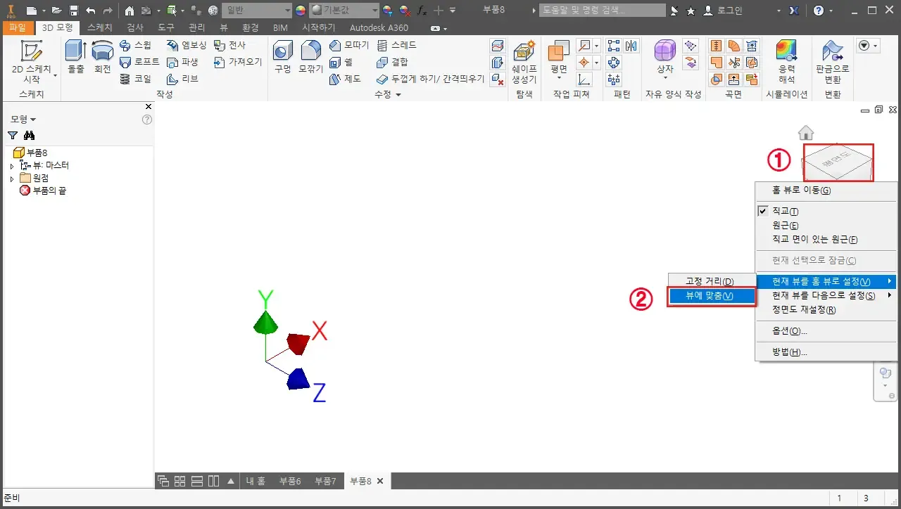 - 인벤터 홈 뷰(Home View) 방향(F6)을 원하는 좌표계로 설정하는 방법