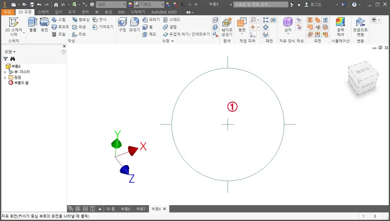 앞에서도 언급했지만, 3D 캐드를 사용할 때는(오토캐드 아님) 축은 크게 신경 쓰지 말자. 축에 신경 쓰다면 작업이 점점 어려워질 수도 있기 때문에, 방향만 맞춰서 작업하면 정말 수월하다.ㅎㅎㅎ