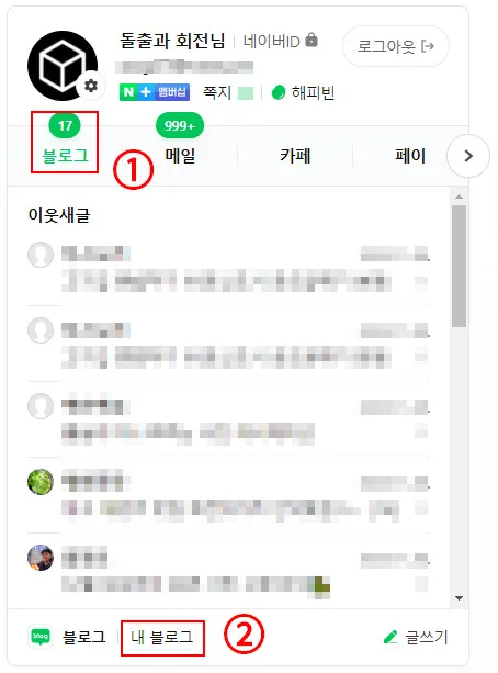 ② 내 블로그를 클릭해서, 네이버 개인 블로그로 들어간다.