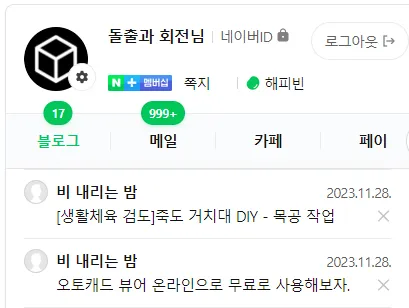 ※ 블로그를 운영하지 않아도 되며, 블로그가 개설되어 있지 않다면, 대충 개설해도 된다.
