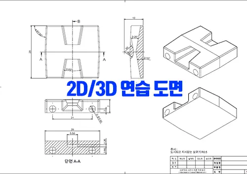 오토캐드, 솔리드웍스, 인벤터, 카티아, UG-NX 등 3D 캐드를 공부할 수 있는 연습 도면