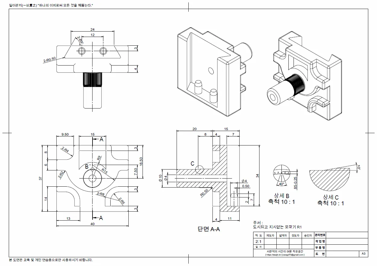 3D 캐드를 공부하시는 많은 분들을 위해, 연습할 수 있는 초/중급 난의도의 연습 도면을 공유한다.