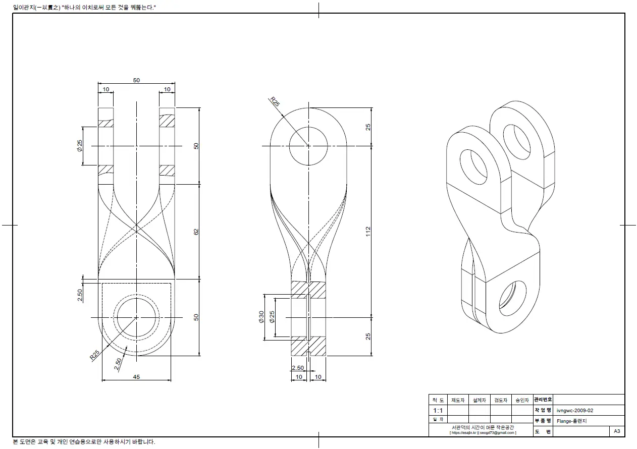 미래를 위해서 또는 직무능력을 향상하기 위해서 열심히 2D, 3D 캐드를 공부하시는 분들을 위해, 연재하고 있는 연습 도면이다.