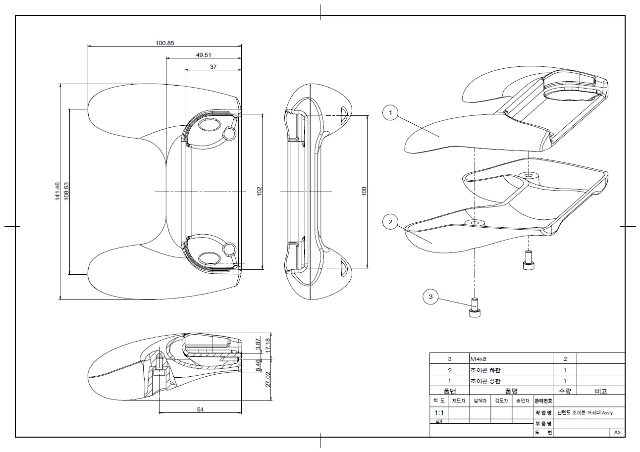 실제 출력 완성된 결과물과 조이콘과 결합 여부 체크에서는 아주 성공적으로 결합이 이루어졌으며, 우려했던 조립 여유공간도, 거의 없이 정확하게 조립되어 사용상 흔들림이나 쉽게 빠지는 현상은 발생하지 않는다. ㅎㅎㅎ