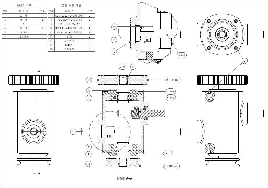 제공하는 PDF도면을 참고로, 여러분이 주력으로 공부하는 3D 캐드 프로그램을 이용해서 부품을 모델링한 후, 제공하는 부품파일을 이용해서 조립품도 생성하고, 최종적으로 도면까지 작성하는 순서로 연습하면 될 것이다.