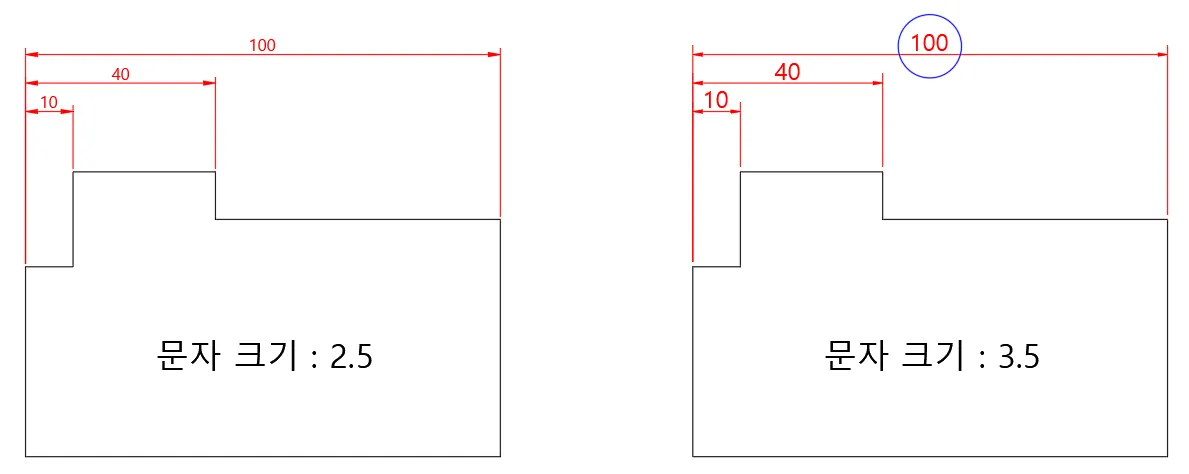 ※ `dimbase`를 사용하는 분야에서는 치수 기입 후, 소급 적용이 되지 않는 관계로 먼저 값을 변경해야 한다.
