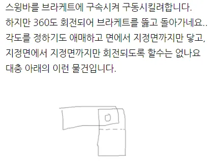 스윙바를 브라케트에 구속시켜 구동시키려 합니다. 하지만, 360도 회전되어 브라케트를 뚫고 돌아가네요.