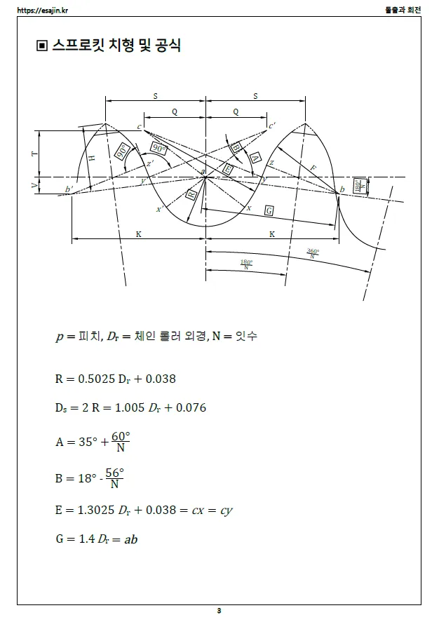 2-4. 체인 롤러 외경 공식 및 스케치