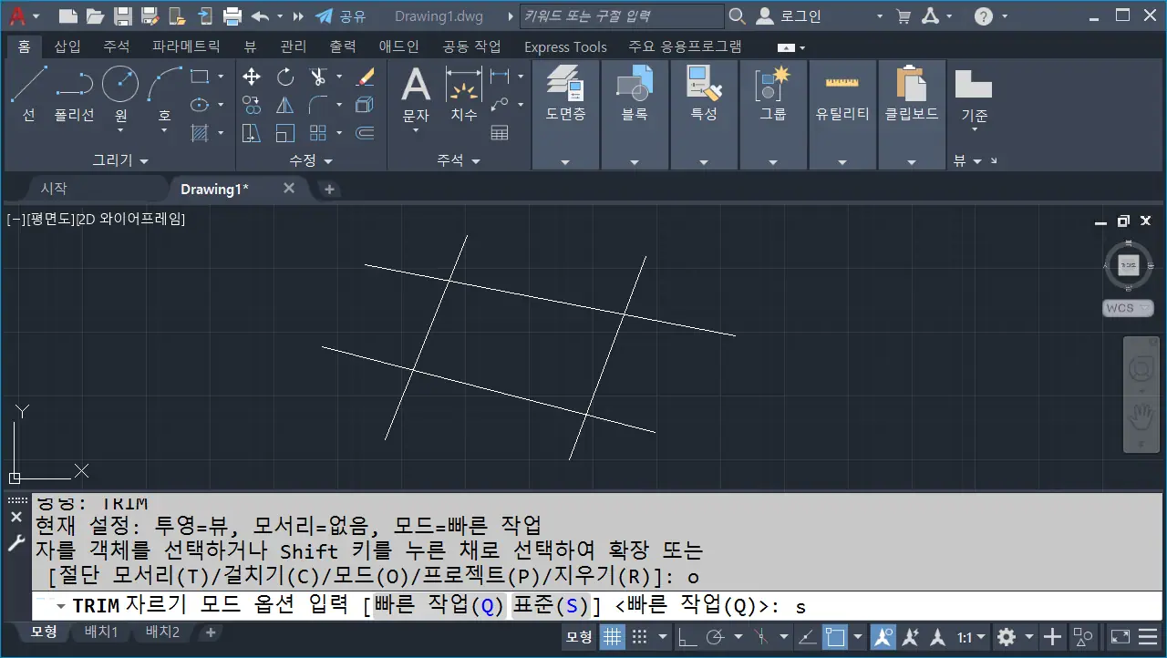 - 오토캐드 버전 2021 이상 트림, 연장 선택 자르기 및 늘리기 설정 방법